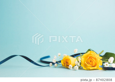黄色いバラとガーベラのブーケ 花束の写真素材