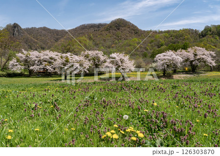 【富山県】あさひ舟川べりの満開の桜並木と北アルプス