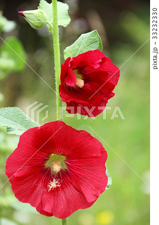 夏の花、赤いタチアオイの花
