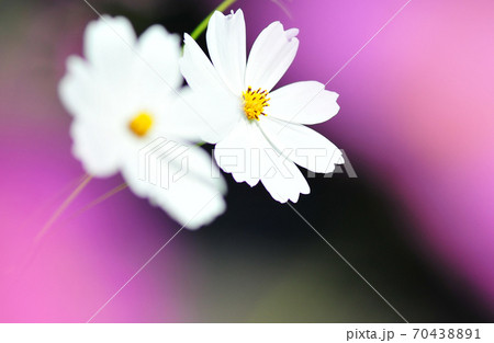 ピンクと白のコスモス(緑背景) 凛と咲くコスモス