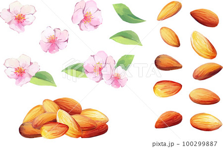 アーモンドと花 水彩風ベクターイラストセット