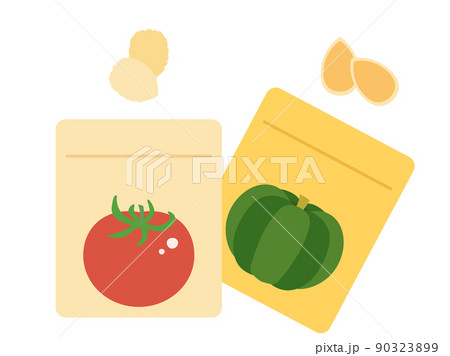 トマトとかぼちゃの種をイメージしたイラスト