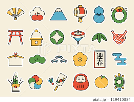 お正月 アイテム 年賀状素材 アイコン イラスト セット 年賀状 縁起物 かわいい 墨だまり 迎春