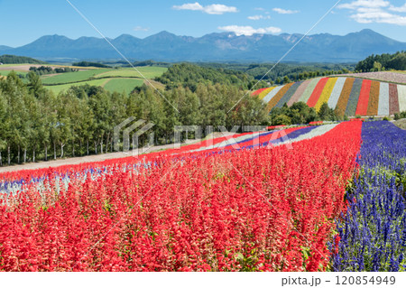 【美瑛町 四季彩の丘から秋の風景と十勝岳連峰】