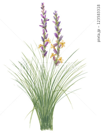 水彩で描いたハナスゲ 花と根 花菅 知母