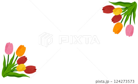 チューリップのフレームスクエア 水彩風手描きイラスト
