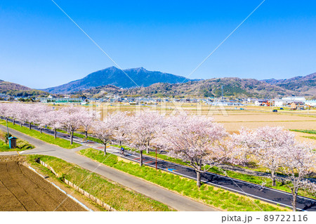 つくば霞ヶ浦りんりんロードの桜並木と筑波山 茨城県 サイクリングロード