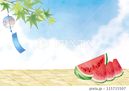 夏の青空とスイカの暑中見舞い