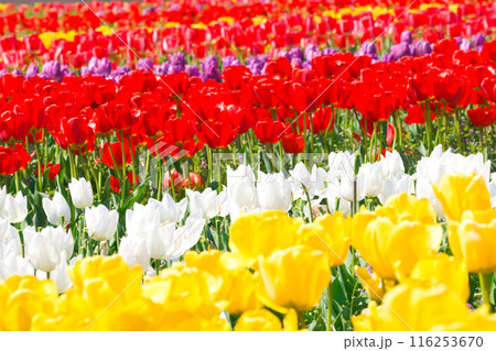 【大阪府】4月・爽やかな春、透き通った青空、満開のチューリップで賑わう観光地