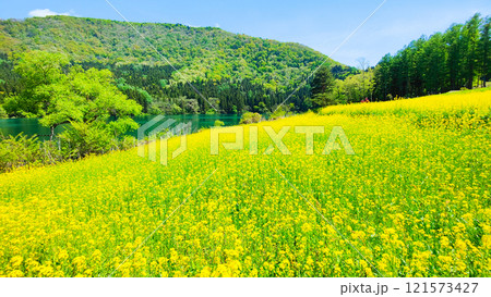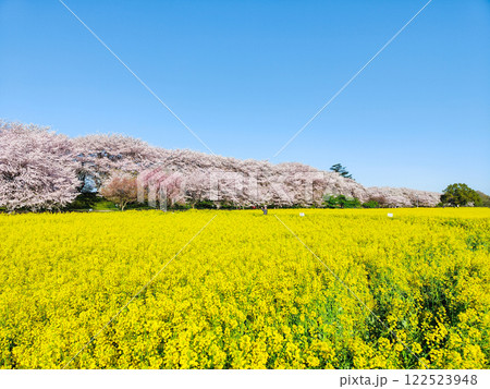 埼玉県熊谷市小八林 荒川支流の和田吉野川沿いの中の淵親水公園 桜並木と菜の花畑