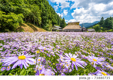 京都市左京区久多の古民家の畑一面に咲く北山友禅菊をアップで捉えた写真
