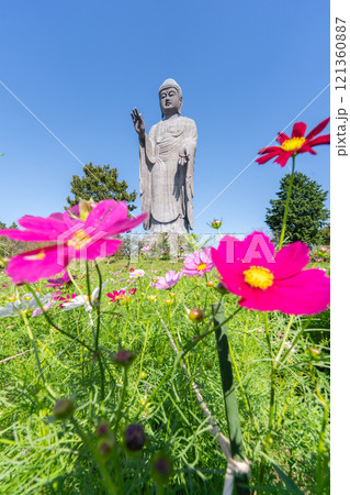 コスモスの傘と牛久大仏