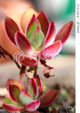 エケベリア 春になると葉は緑が濃くなり赤い花が咲きます。