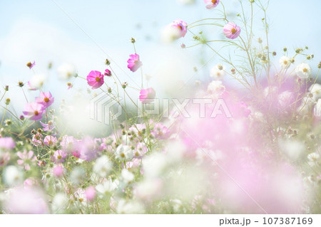 コスモス咲く爽やかな野原 岩手県 御所湖広域公園