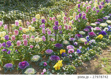 公園 公園の花壇 春の花壇