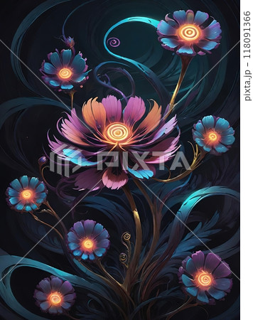 The concept of a stylized flower with a unique mix of colors and digital retouching