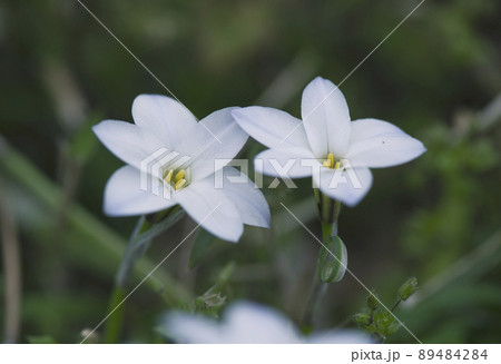 木陰に咲く,交差して二つ並んだハナニラの花_縦1