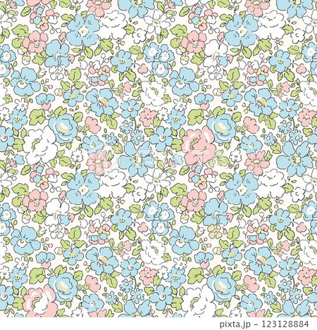 Liberty pattern. Millefleurs Elegant hand drawn floral pattern with small flowers