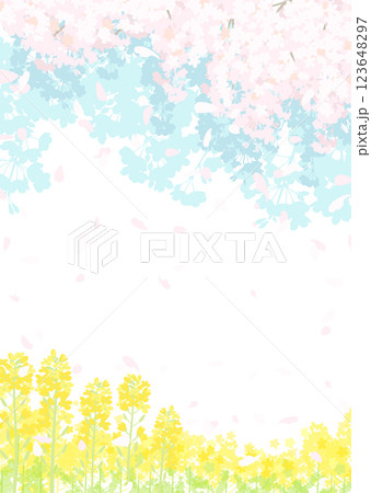 日本の春の花の風景、桜と菜の花のイラスト