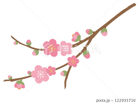 お正月や節分・成人式に使いやすい和風なピンク色の梅の花の木のベクターイラスト素材セット