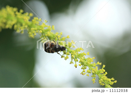 生き物 昆虫 ヒメトラハナムグリ、ナンキンハゼの花を訪れる