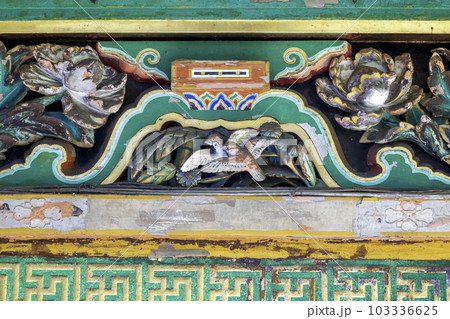 日光東照宮の回廊にある建築装飾彫刻,雀の彫り物