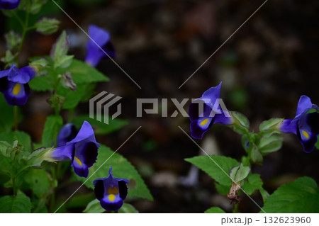 公園の花壇に紫色のトレニアの花が咲いています。学名はToreniaです。