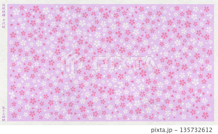 春の花「小桜」模様を散らして版画風に描いた、和紙の千代紙