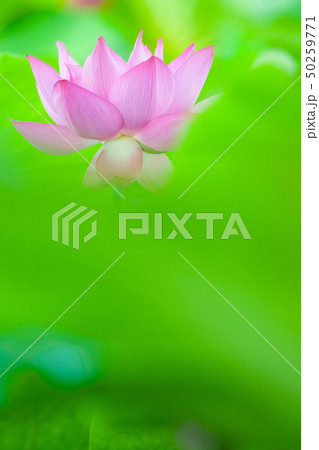 白と桃色のグラデーションが美しい蓮の花【緑背景】