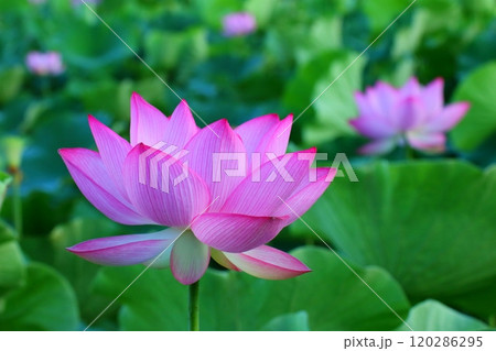奈良県橿原市 盛夏の藤原宮跡で咲く蓮の花