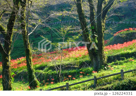 彼岸花咲く古木の桜林 【相模原市津久井 10月】