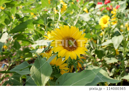 Vibrant yellow flowers bloom, creating lively natural beauty. Vibrant plants flourish, vibrant hues