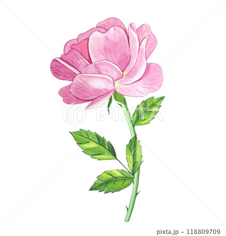 Fragrant flower with blooming petals was grown by flower on print. Watercolor artwork