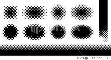 ハーフトーン あしらい セット 円 楕円 フレーム 見出し 黒 ベクター