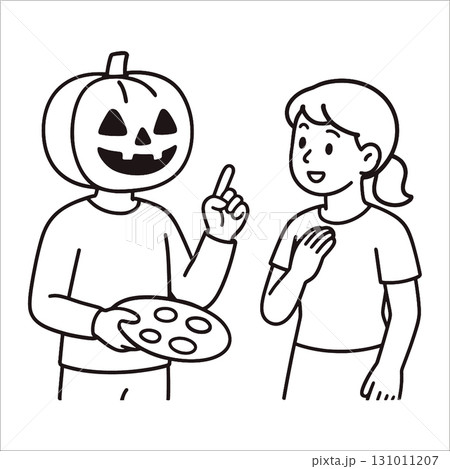 Coloring book coloring page transparency pumpkin head person holding palette talking