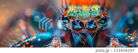 A vibrant close-up photograph of a colorful spider showcasing intricate details and vivid colors.