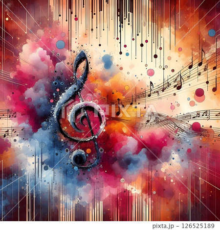 Abstract Digital Symphony in Vibrant Treble Clef with Sound Waves and Music Notes with Generative AI.