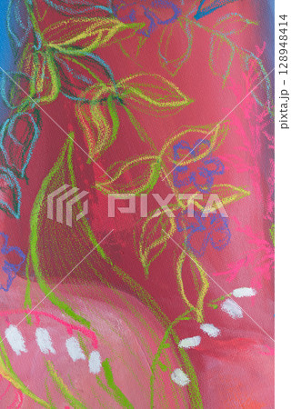 Colorful fragments of a flower painting created using pastel techniques on textured paper