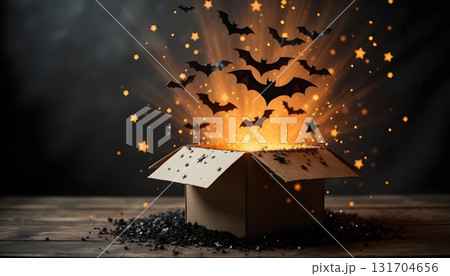 Mysterious Box with Bats and Sparkles on Dark Background for Halloween Theme