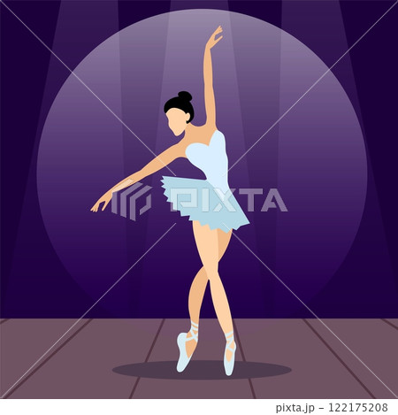 Vector people. Performance of ballet dancers. A cute ballerina dances ballet on stage. Vector