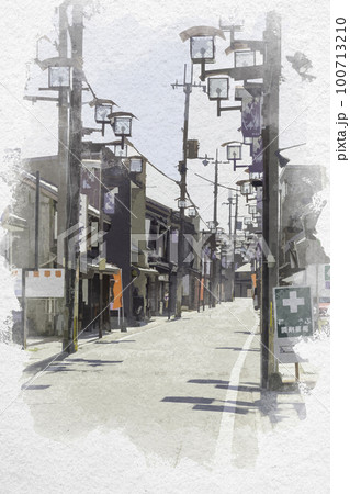 水彩画風 彦根市街 花しょうぶ通り商店街 滋賀県彦根市