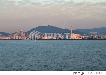 都市風景 朝の神戸港付近 神戸市長田区苅藻島と高取山