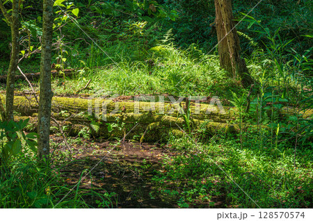苔に覆われた湿地の倒木 奥琵琶湖 滋賀県長浜市
