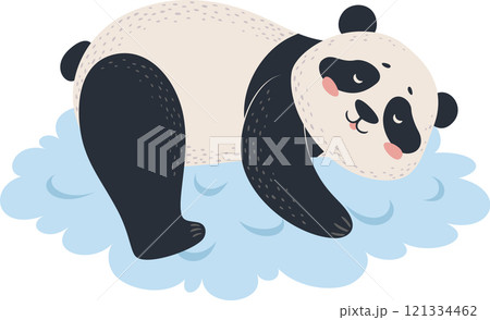 Adorable panda lying on a cloud, enjoying tranquility and peace, creating a heartwarming scene ideal for children s illustrations promoting relaxation and well being