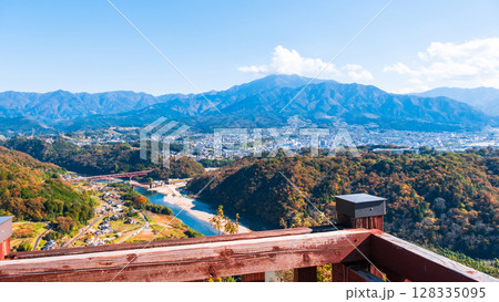 苗木城跡(秋):天守展望台から恵那山方面の眺め