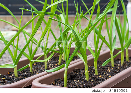 プランターで栽培中のニンニク 12月