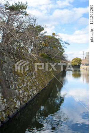 Water moat of Wakayama castle, old historic Japanese castle in Wakayama city in Kansai region, Japan