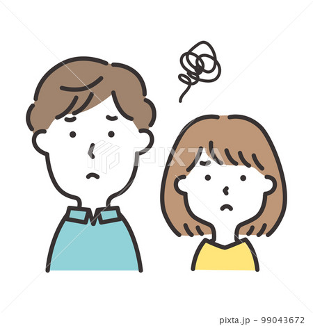 悩んでいる若い夫婦のイラスト