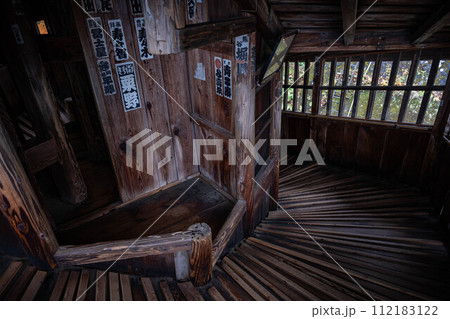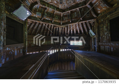 日本 福島県会津若松市の飯盛山の中腹に建つ会津さざえ堂の内部の螺旋階段