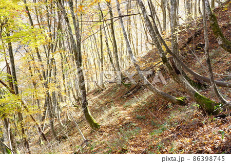 晩秋の広留野高原の樹林の落ち葉と苔1 鳥取県八頭郡若桜町